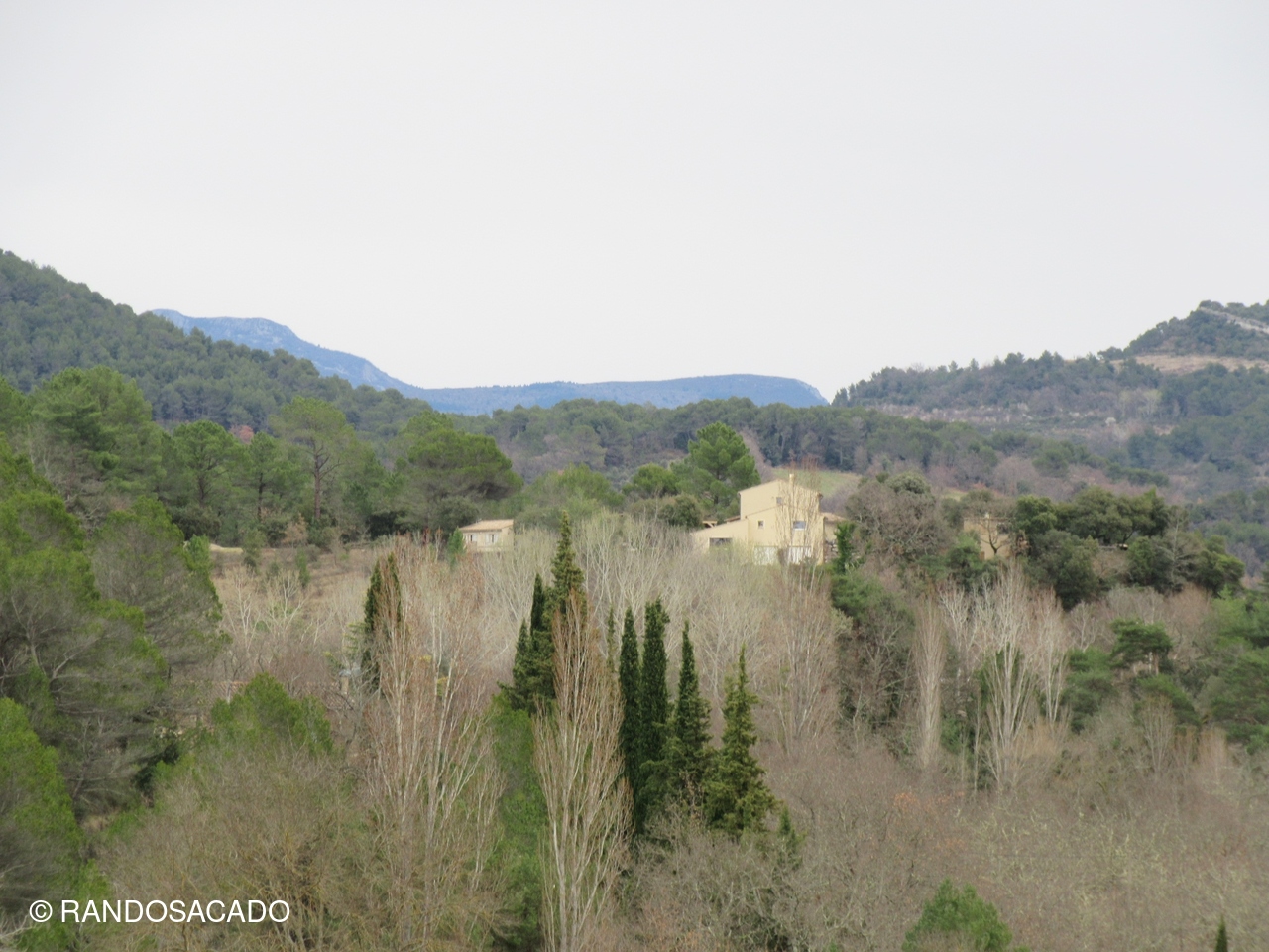 Aujourd'hui, Francis nous emmèna randonner dans les alentours de Faucon, en passant par la chapelle Ste Colombe Le temps resta gris mais sec, ce qui nous permit de marcher avec plaisir