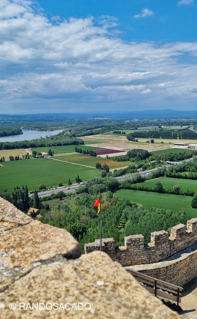 La forteresse, perchée sur un escarpement rocheux sur la rive gauche du fleuve, se dresse au-dessus village de Mornas, dans le département français de Vaucluse. La forteresse est un verrou de la vallée du Rhône, sur laquelle elle offre un point d'observation naturel.