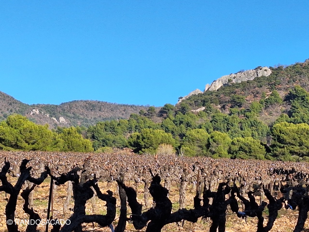 C'est ainsi que Momo a emmené 14 randonneurs sur les chemins de Piegon à Puyméras, sous un beau soleil frisquet qui ne faisait guère fondre les plaques de glaces cachées dans l'ombre